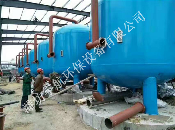 當系統處于過濾狀態時,加壓水從濾罐進口流入布水系統,均勻的到達濾料層。當水流過濾料層時,懸浮物被濾料截留。過濾器底部有帶精密縫隙的集水器,過濾后的水被均勻收集,并流出過濾器。集水器上的精密縫隙能有效防止濾料的流失。機械聯動堞閥(氣動或電動)控制著水流的方向。